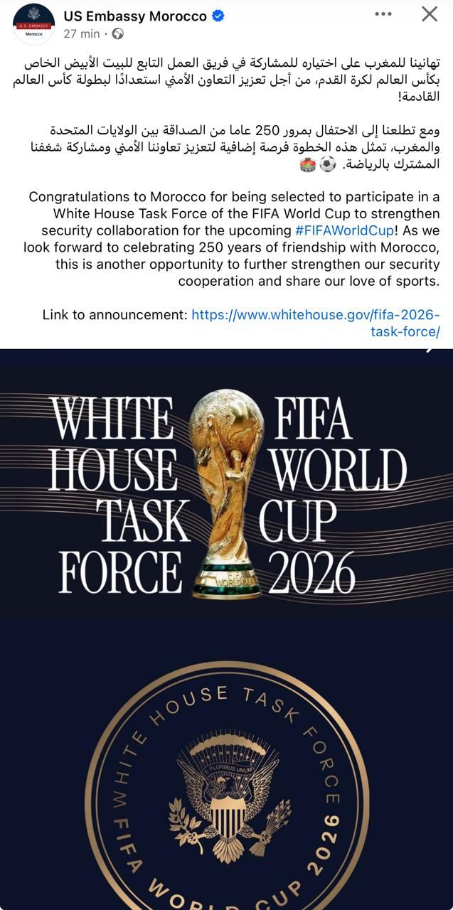 فقد هنأت السفارة الأمريكية بالرباط المملكة المغربية على هذا الاختيار، الذي لا يمكن قراءته بمعزل عن تراكم تجربة مؤسساتية وأمنية راكمها المغرب على مدى سنوات، خصوصا في مجال تأمين التظاهرات الرياضية الدولية. وهو اختيار يتجاوز طابعه التقني ليحمل أبعادا سياسية، تعكس مستوى الثقة الذي باتت تحظى به الرباط لدى شركائها الدوليين، وفي مقدمتهم الولايات المتحدة.