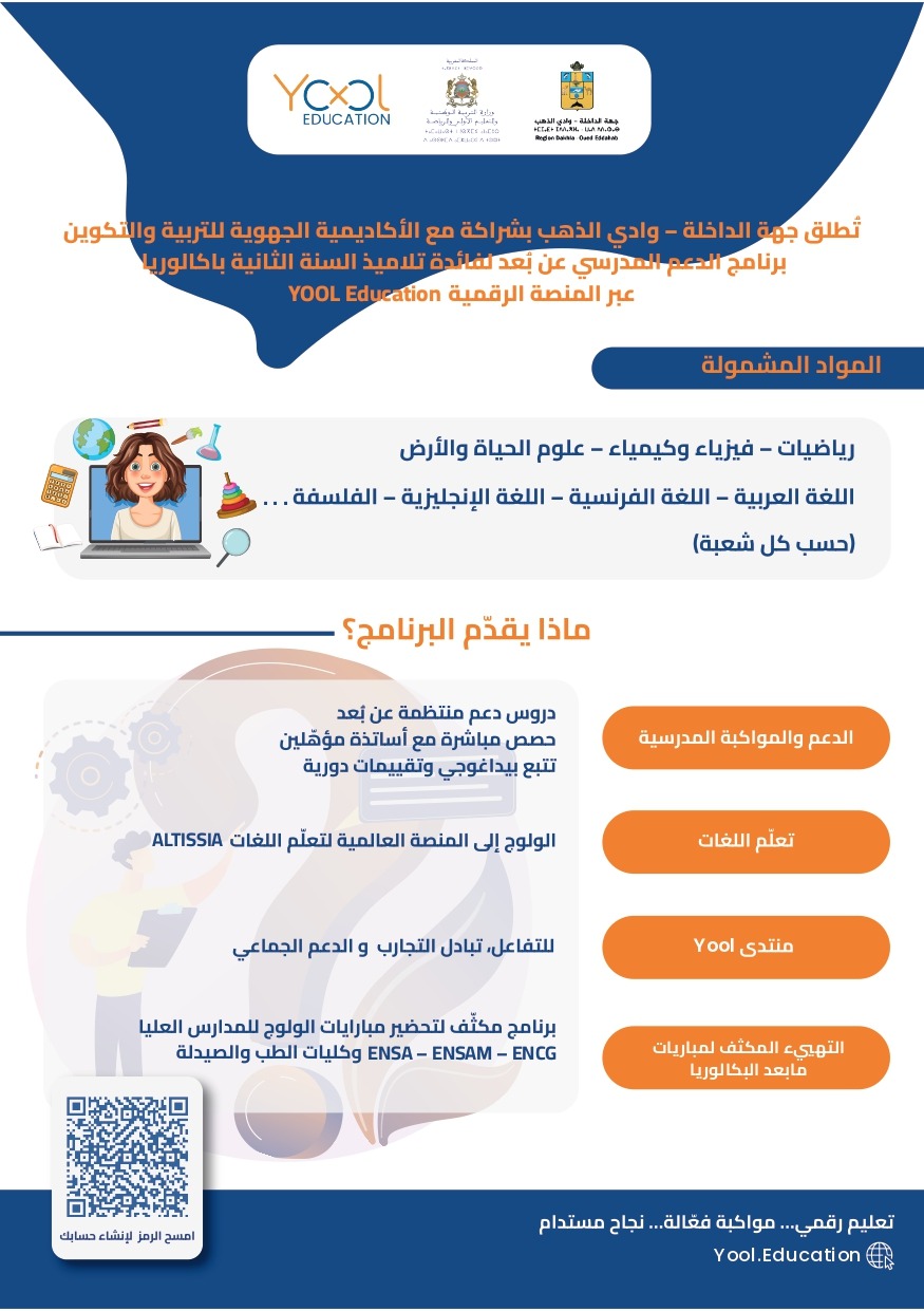 جهة الداخلة – وادي الذهب تطلق دعماً رقمياً غير مسبوق لتلاميذ الباكالوريا عبر منصة YOOL EDUCATION