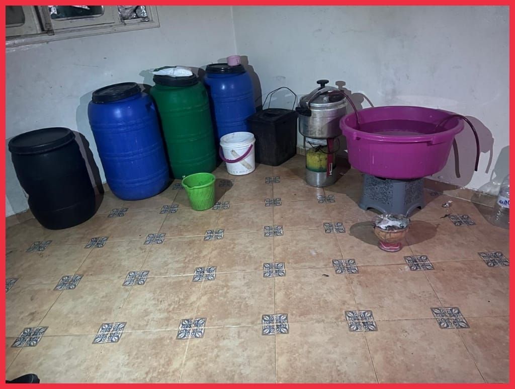 وأسفرت عملية التفتيش بمسكن المرأة عن ضبط معمل تقليدي لتقطير المسكر، وحجز معداته، إلى جانب حجز 240 لترًا من المواد الأولية المخمرة داخل براميل، وعشر لترات من المسكر الصافي الجاهز للترويج.
